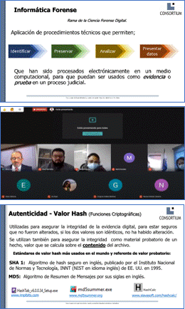 "Informatica Forense", realizada el pasado 29 de julio de 2020, orientada a funcionarios de la Procuraduría General de la Nación, Instituto Nacional de Medicina Legal y Ciencias Forenses, Dirección de Investigación Judicial, y Unión Nacional de Abogadas, de Panamá; espacio donde se dio a conocer los procedimientos para proceder en el lugar de los hechos, cuando se encuentren dispositivos informáticos.